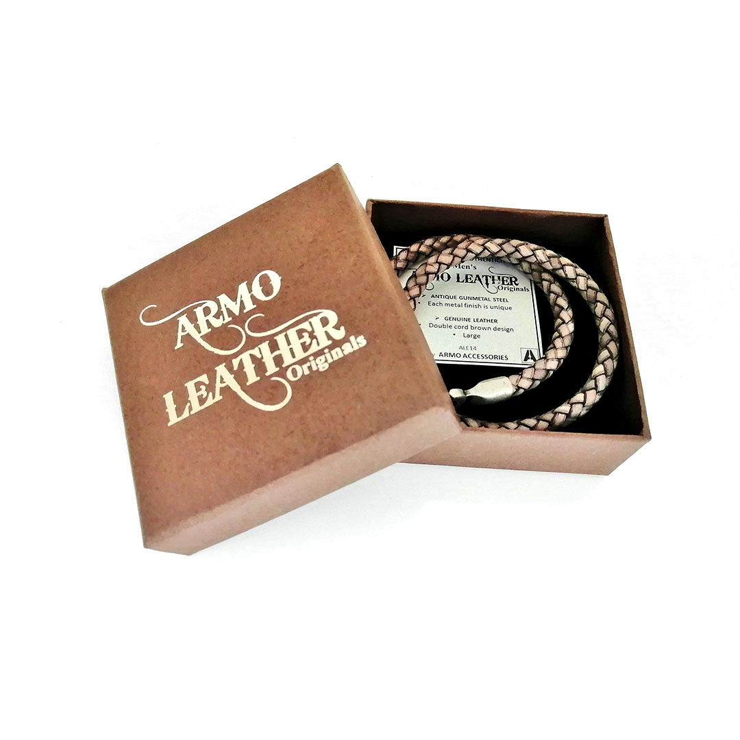 Dieses geflochtene Armband aus echtem schwarzem Leder verbindet markantes Design mit schwarzen Achat-Edelsteinen. Der Achat gilt seit Jahrhunderten als Symbol für Ausgeglichenheit und Stärke – ein dezentes Detail mit besonderer Bedeutung.
