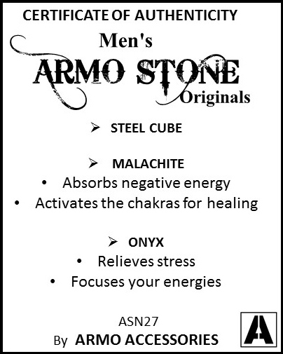 Die 8 mm grossen Steine sind auf ein starkes, elastisches Band gefädelt und sorgen für hohen Tragekomfort. Ein Edelstahlwürfel mit Armo-Logo rundet das Design ab und steht für die langlebige Qualität von Armo Accessories.