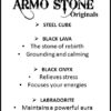 Die 8 mm grossen Natursteine sind auf ein starkes, elastisches Band gefädelt und bieten hohen Tragekomfort. Ein Edelstahlwürfel mit Armo-Logo ergänzt das Design und unterstreicht die langlebige Qualität von Armo Accessories.