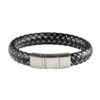 Herrenarmband Schwarzes flaches, geflochtenes Leder und geflochtener Edelstahldraht